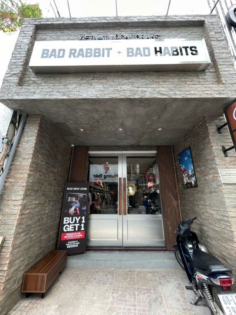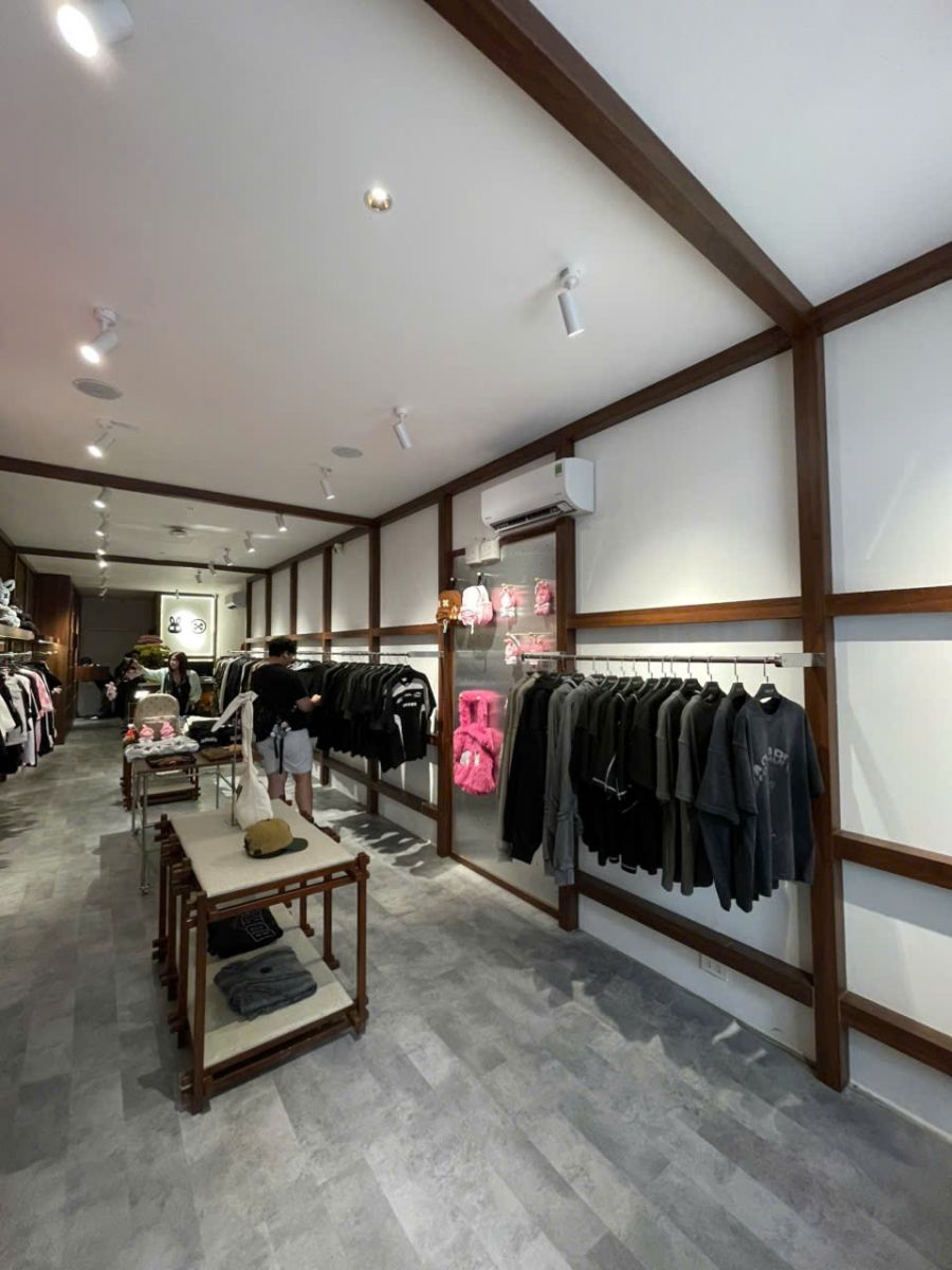 JDesign Co., LTD brings a modern, edgy, street-style interior design to the Bad Habits fashion store system at 180 La Thanh and 68 Hang Non, Hanoi, and 2 Tran Huy Lieu, Ho Chi Minh City. With sizes of 40m2, 30m2, and 58m2, the stores are perfectly sized and functional for both living and business. The dominant color scheme of concrete gray combined with warm, dark wood accents, complemented by metal details from iron to brushed stainless steel, creates an impressive, youthful, and distinctly street-style aesthetic that further enhances the striking and unique products of Bad Habits.