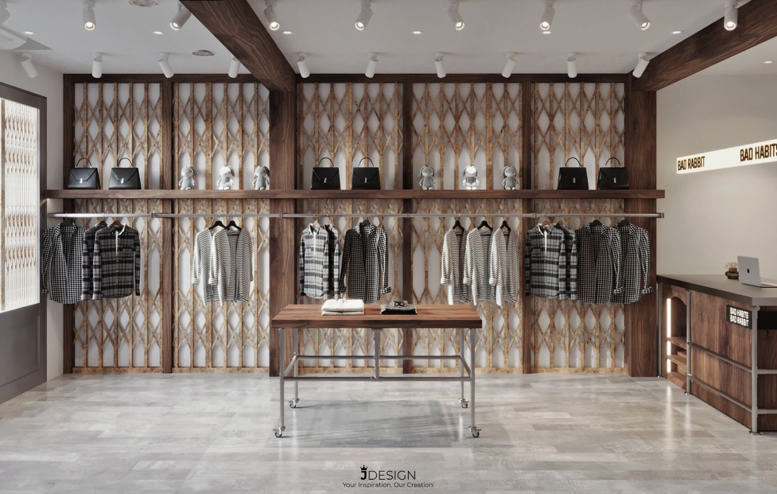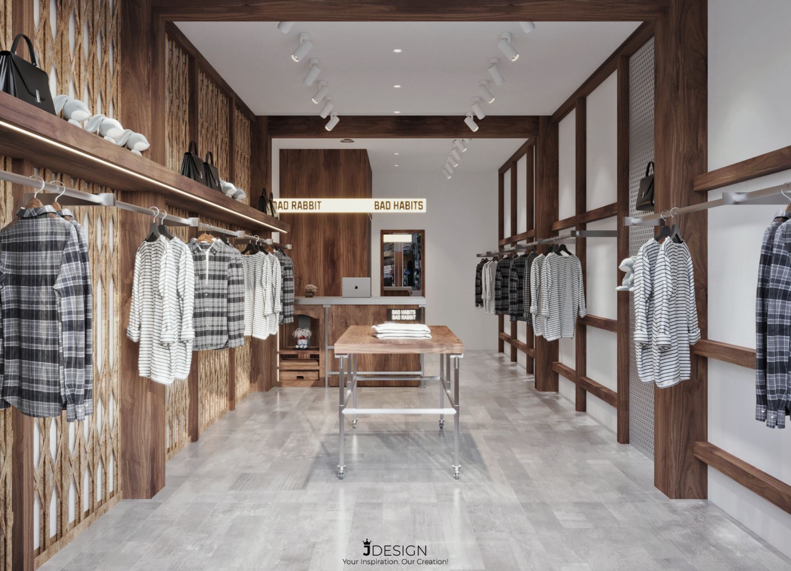 Phong cách Thiết kế Nội thất hiện đại, bụi bặm đường phố, mang chất riêng được JDesign Co., LTD đem đến với Hệ thống Cửa hàng Thời trang Bad Habits tại địa chỉ: