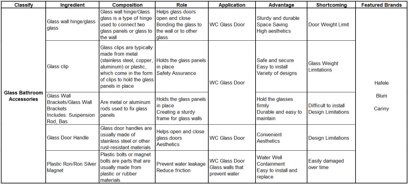 + WC glass door : Used for glass doors in bathrooms and toilets.