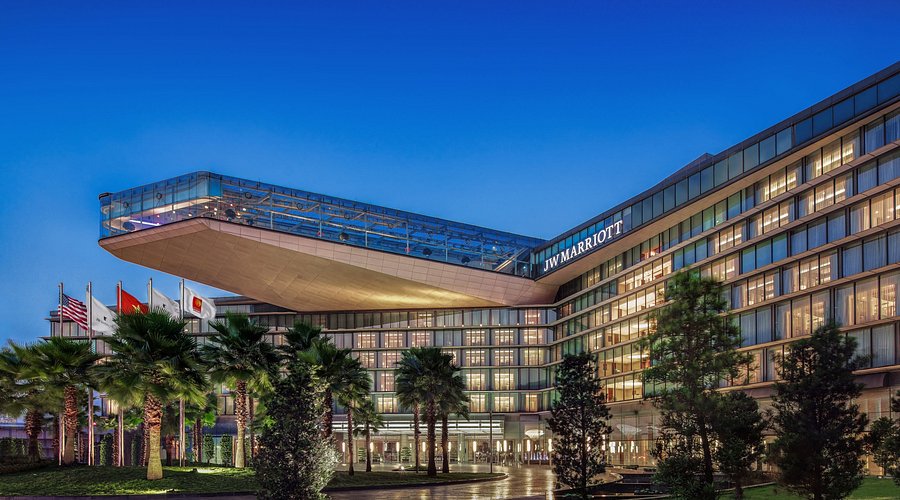 - Đặc điểm: Khách sạn 5 sao sang trọng, nổi bật với kiến trúc hiện đại và không gian rộng lớn. Có hơn 450 phòng & suite, nhiều nhà hàng ẩm thực quốc tế, bể bơi trong nhà, spa, gym và khu tổ chức hội nghị lớn. Thích hợp cho khách công vụ hoặc nghỉ dưỡng cao cấp.